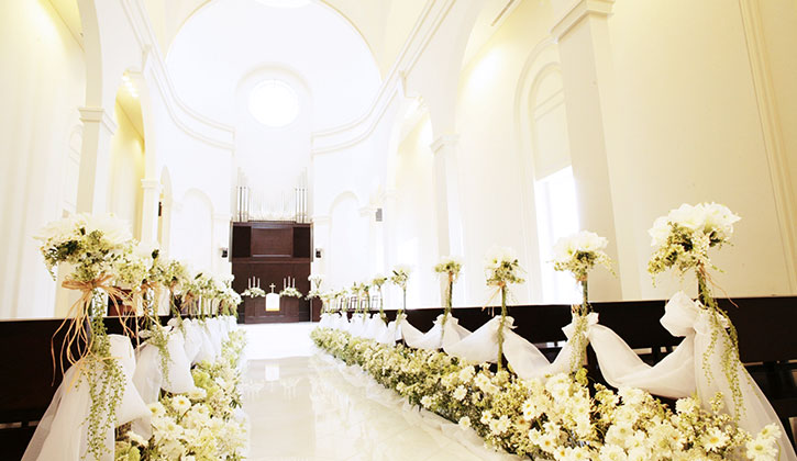 外国人神父、聖歌隊、響くオルガンの音...最高のシーンで、新たな人生を歩むおふたりは祝福のムードに包まれます。
